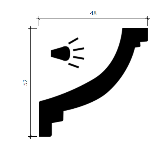 - Ширина по потолку: 48 мм