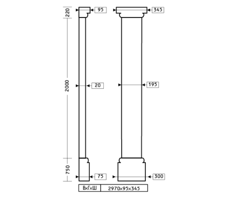 1.20.001 пилястра комплект из 3 частей: капитель, ствол и база.