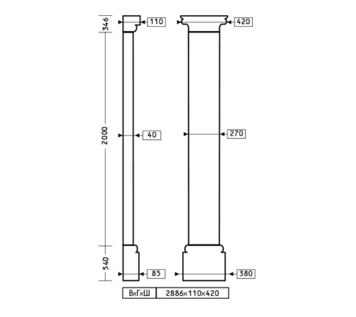 1.20.302 пилястра комплект из 3 частей: капитель, ствол и база.