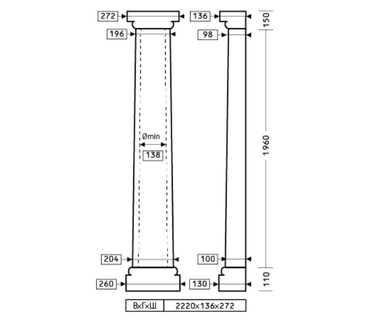 1.10.104 комплект полуколонны из полиуретана с составными частями.