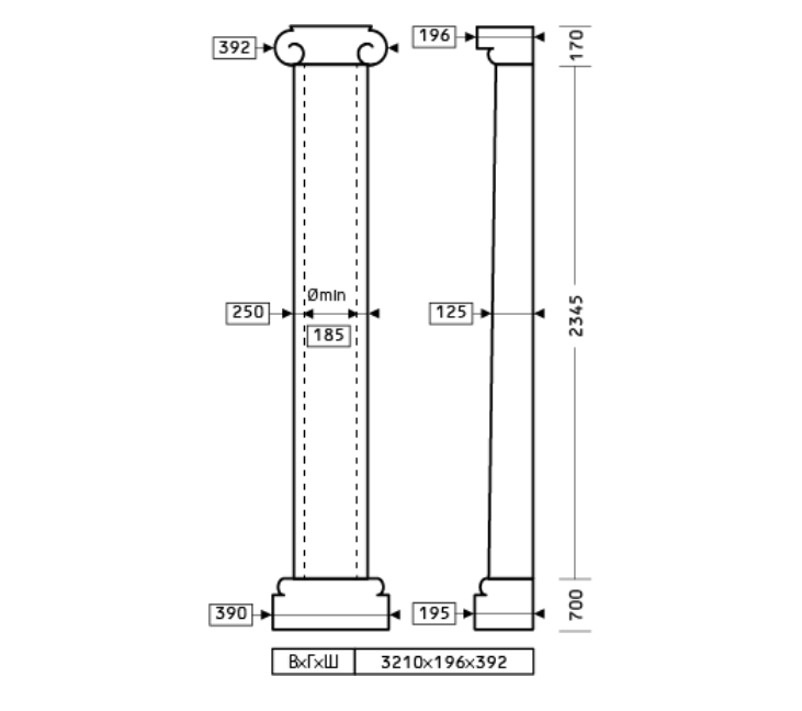 1.10.207 комплект полуколонны из полиуретана с составными частями.