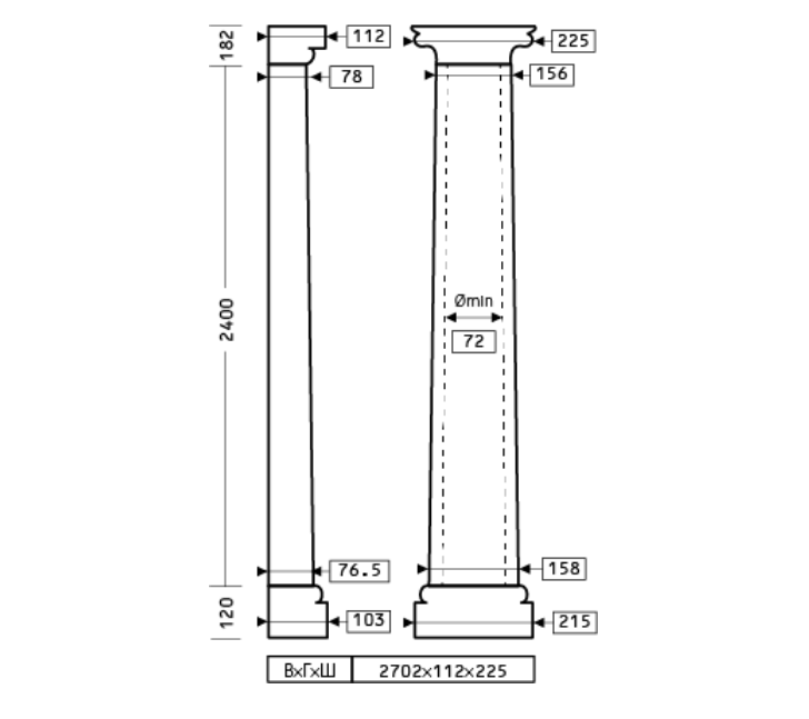 1.10.302 комплект полуколонны из полиуретана с составными частями.