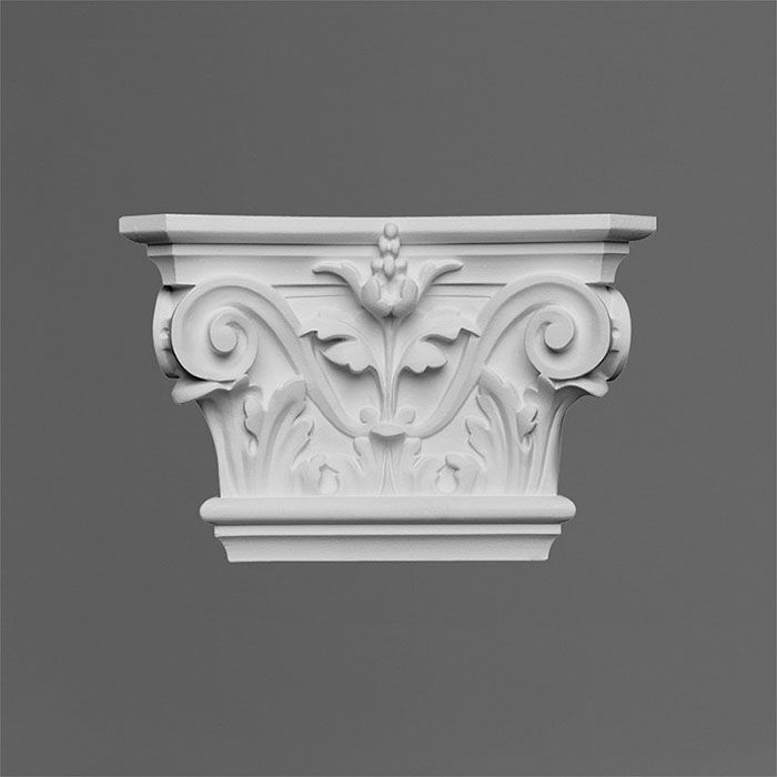 Небольшая коринфская капитель пилястры K201 декорирована листьями аканта и волютами. Материал данного элемента - полиуретан высокого европейского качества, соответствующий всем нормам экологической безопасности. Верхним слоем элемента является ультратонкая полиуретановая пленка (грунтовка), составляющая с ним единое целое, благодаря чему изделие может быть окрашено любыми качественными красками.