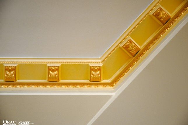 Карниз C307 является одним из самых крупных и самых классических. Сложный дизайн в дворцовом стиле сделает помещение более благородным и величественным, придаст интерьеру очарование отреставрированного дома или создаст интересный контраст с современными элементами декора. Для монтажа рекомендуется использовать специальные стыковочный и монтажный клеи Orac Decor.