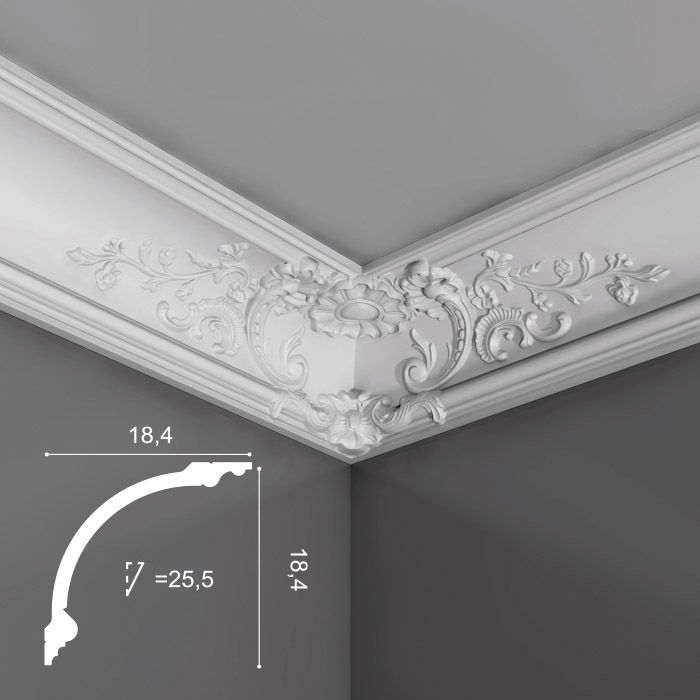 Карниз C338B декорирован изящной и элегантной арабеской, выполненной в стиле барокко. Предназначен для углов 90°. Элемент прекрасно сочетается и стыкуется с артикулами C338, C338A. Прекрасно подходит для просторных помещений с высокими потолками. Выполнен из полиуретана высокого европейского качества Purotouch®, полностью соответствующего всем нормам экологической безопасности.