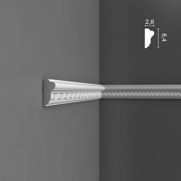 Молдинг P6020 декорирован рядом дентикул и прекрасно подойдет для интерьеров в классическом стиле. Материал данного элемента - полиуретан высокого европейского качества, соответствующий всем нормам экологической безопасности. В нашем каталоге вы сможете найти гибкий аналог к данному элементу. Для монтажа рекомендуется использовать клеи Orac Decor.